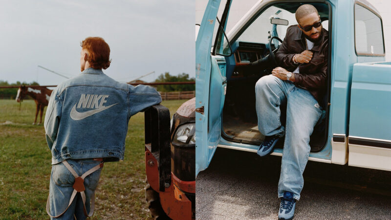 협업 의류도 선보인다. 페이디드 데님 청바지는 탄탄한 슬라우치 컷으로 제작되어, 컬렉션 신발과 잘 어울리도록 특별히 디자인됐다고. 트러커 재킷은 셀비지 데님 소재로 만들었으며, 체인 스티치로 마감했다. 바지 상단과 재킷 뒷면에 새겨진 나이키 스우시를 확인해 보길.