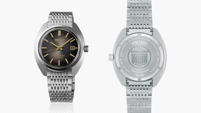 39.4mm 스테인리스 스틸 케이스는 박스형 사파이어 크리스탈로 덮여 있으며, 브러싱 및 미러 폴리싱이 킹 세이코 특유의 날렵함을 강조한다. 착용감은 멀티링크 브레이슬릿 덕분에 부드럽다. 주면서도 편안하고 유연한 멀티링크 브레이슬릿으로 부드러움을 더한다. 무브먼트는 시간당 28,800회 진동하는 오토매틱 칼리버 6L35로, 45시간의 파워 리저브를 갖췄다. 800개 한정 생산, 가격은 3,100달러(약 450만 원).