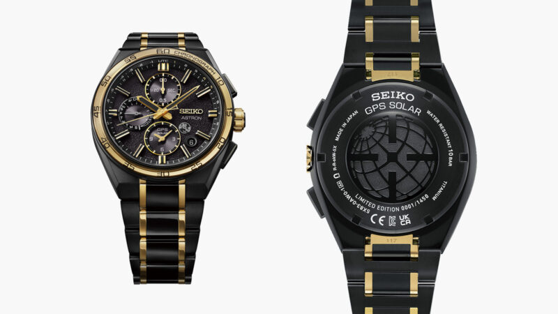 아스트론 SSH186은 1969년 세상을 놀라게 했던 쿼츠 아스트론을 현대적으로 계승한다. 티타늄 케이스와 브레이슬릿에는 블랙 슈퍼하드 코팅을 입혔고, 핸즈와 인덱스, 베젤에는 골드 컬러로 포인트를 더했다. 1시, 4시, 5시 방향에 놓인 UTC 스케일의 골드 마커는 145주년 모델임을 은근히 드러낸다.