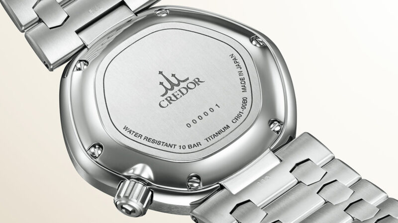 케이스와 블레이슬릿은 스테인리스 스틸보다 30% 가벼운 브라이트 티타늄으로 만들었다. 경량성은 물론 높은 내구성과 착용감을 선사할 예정. 케이스 크기는 41.7 x 38.8mm, 두께는 무려 8.9mm로 초박형이다. 무브먼트는 킹 세이코 계열의 크레도르 칼리버 CR01으로 진동수 4Hz, 45시간의 파워리저브 성능을 발휘한다.