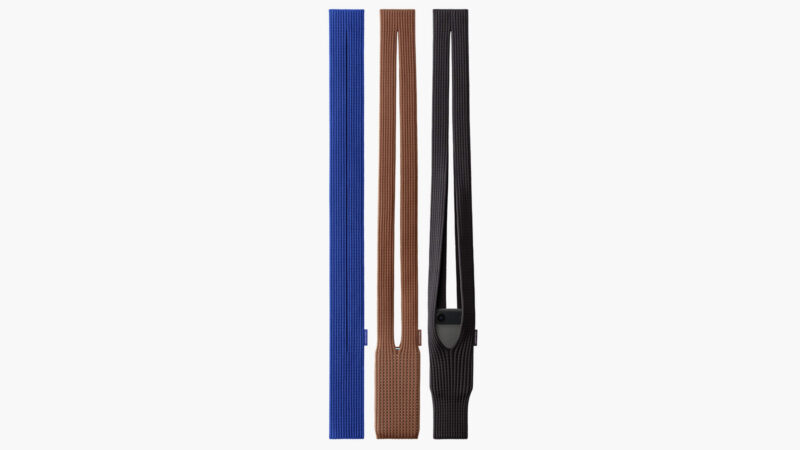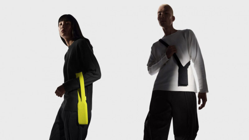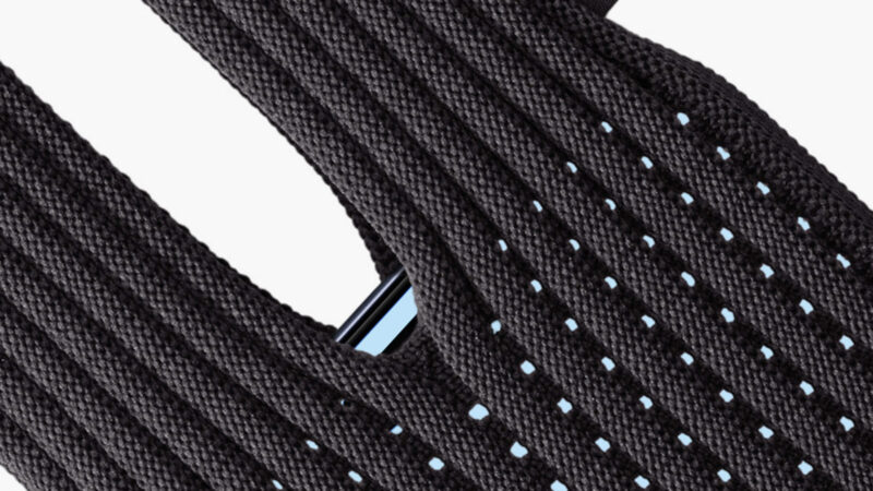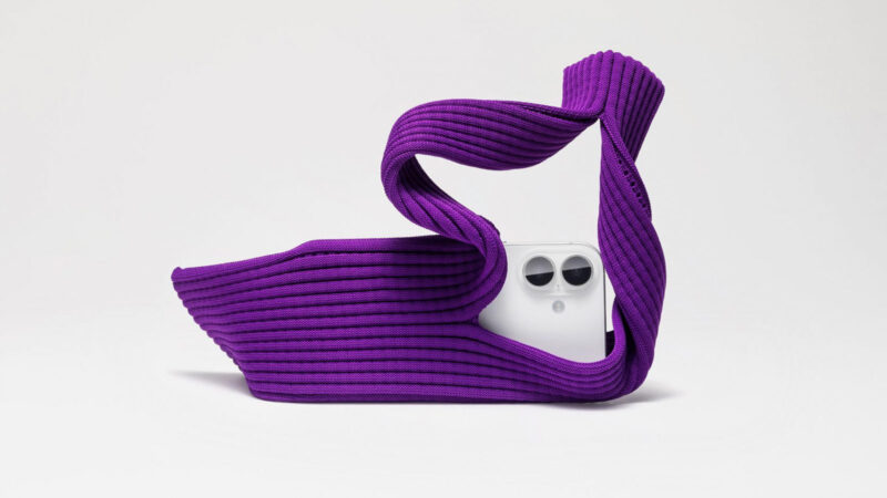 아이폰 포켓은 한 장의 천이라는 이세이 미야케의 핵심 개념에서 출발했다. 이세이 미야케는 한 장의 천을 자르지 않고 입체적인 형태를 만드는 3D 니팅 기술로 알려져 있는데, 이를 적용해 골지 문양의 텍스처가 유연하게 확장되는 게 특징. 신축성 있는 플리츠 니트 조직이 아이폰을 완전히 감싸 보호하면서도, 늘어날 때는 내부가 은은히 비쳐 화면을 살짝 확인할 수 있다.