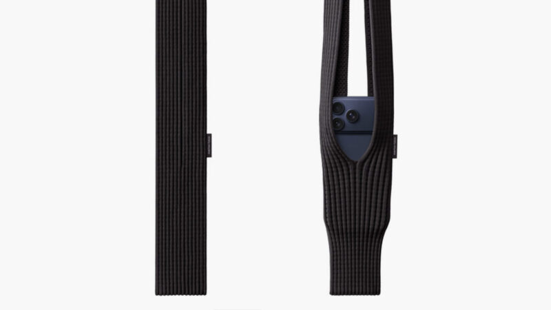 디자인은 직사각형의 미니멀한 형태. 손에 들거나 가방에 묶거나, 어깨나 팔에 두르는 등 다양하게 착용하면 된다. 스트랩 길이는 두 가지다. 짧은 스트랩은 손목에 차는 가방처럼, 긴 스트랩은 크로스백처럼 매면 된다. 컬러는 짧은 스트랩 여덟 가지, 긴 스트랩 세 가지 색으로 구성된다. 아이폰은 물론 에어팟 등 일상 소지품도 넣을 수 있는 건 덤이다. 가격은 짧은 스트랩 23만 9천 원, 긴 스트랩 33만 9천 원.