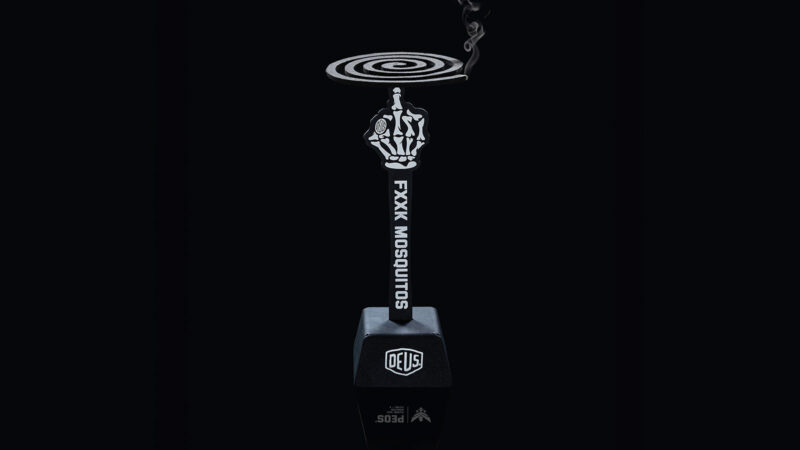 이번 협업 제품은 코일 홀더를 담을 수 있는 수납용 스토리지 백이 함께 포함돼 있다. 스토리지 백에는 데우스 엑스 마키나와 함께 ‘FXXK MOSQUITO’라는 강렬한 텍스트가 새겨졌다. 생활 발수가 가능한 소재로 기능성을 더했고, 리플렉티브 프린팅은 야간 활동에 한 줄기 빛을 제공한다.
