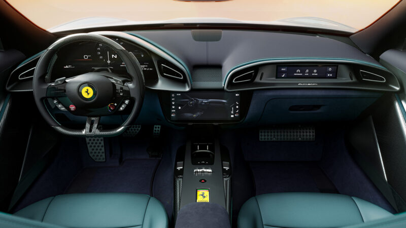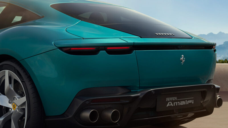 페라리는 아말피의 대표 컬러로 베르데 코스티에라(Verde Costiera)를 선택했다. 아말피 해안의 빛을 담은 청록색이다. 20인치 휠과 함께 어울려 깊은 인상을 남긴다.