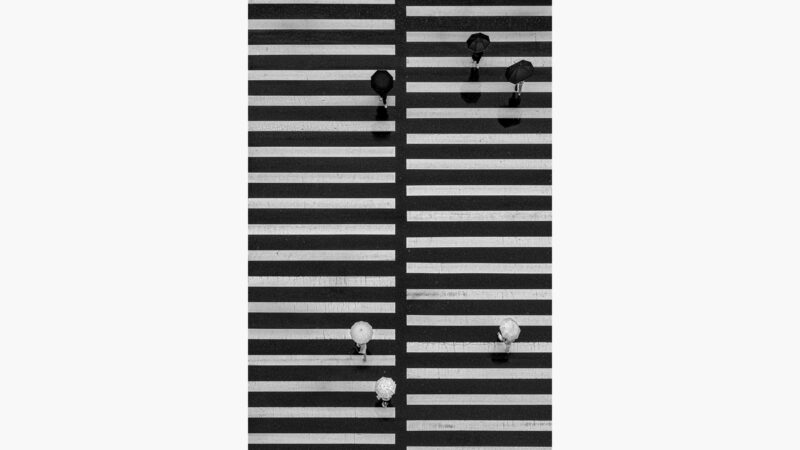 비 오는 날 횡단보도 위에서 찍은 한 장의 사진. 검은 우산과 흰 우산, 반복되는 횡단보도 선들이 기하학적 질서를 만들어냈다. 그 순간은 단순한 이동이 아니라, 도시가 만든 무대처럼 느껴지더라.
