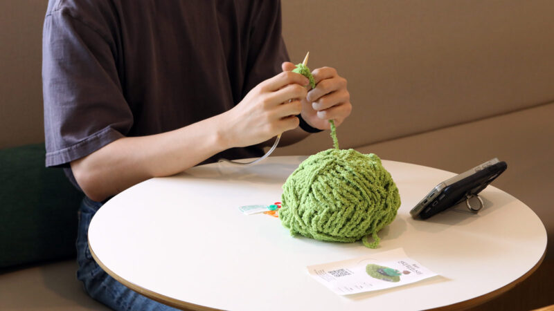 코로나 상황이 사그라들자 사람들은 그간의 칩거에 대한 반발심으로 모든 관심을 밖에 두었다. 열정적으로 뜨개하던 사람들이 바늘을 내려놓게 되면서, 자연히 뜨개는 소강 상태로 돌아가는 듯 보였다. 그런데 다시 한번 그 불씨가 타오르고 있다. 다양한 뜨개 모임 활성화는 물론이요, 유튜브와 SNS에는 뜨개 과정과 결과물 인증이 수두룩하게 올라온다. CGV에서는 뜨개하며 영화를 보는 ‘뜨개상영회’를 운영하고, 르세라핌 멤버 사쿠라는 뜨개질 굿즈 브랜드 ‘꾸로셰’를 선보인 바 있다.