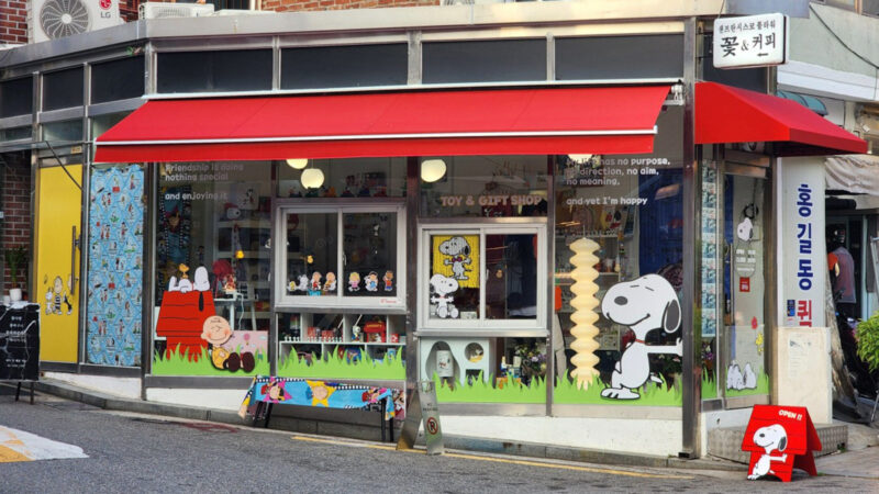 오직 스누피만을 위한 집, 스눞히. 거울, 벽시계, 작은 조명까지 모두 스누피와 친구들로 꾸몄다. 마치 피너츠 애니메이션 속에 들어온 듯 밝고 온화한 분위기가 감도는데, 무엇보다 이곳의 온기를 만드는 건 사장님의 존재! 몇십 년 동안 스누피를 좋아해 온 사람이 들려주는 이야기가 공간 전체에 조용히 스며들어 있다.