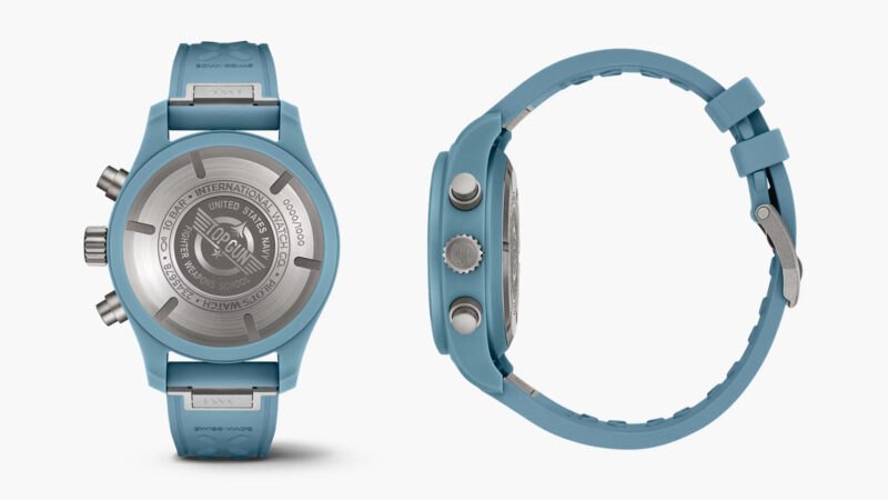 미리마라는 색상 이름은 미 해군의 탑건 프로그램 본거지였던 샌디에이고의 미라마 해병대 항공기지 이름에서 차용했다. 라이트 블루 컬러는 바로 탑건 교관들이 비행복 안에 입는 티셔츠 색상. 케이스뿐만 아니라 다이얼과 러버 스트랩도 동일 색상으로 매치해 컬러로 이번 신제품의 정체성을 매력적으로 드러냈다. 소재마다 특성이 달라 제조 공정에도 차이가 생기는데, 이것이 브랜드에겐 큰 과제였다고.